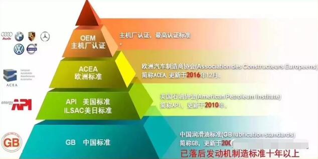 开门见山,先说润滑油 体系的“鄙视链”:OEM主机厂 >欧洲ACEA标准>美日API/ILSAC标准>GB中国标准。