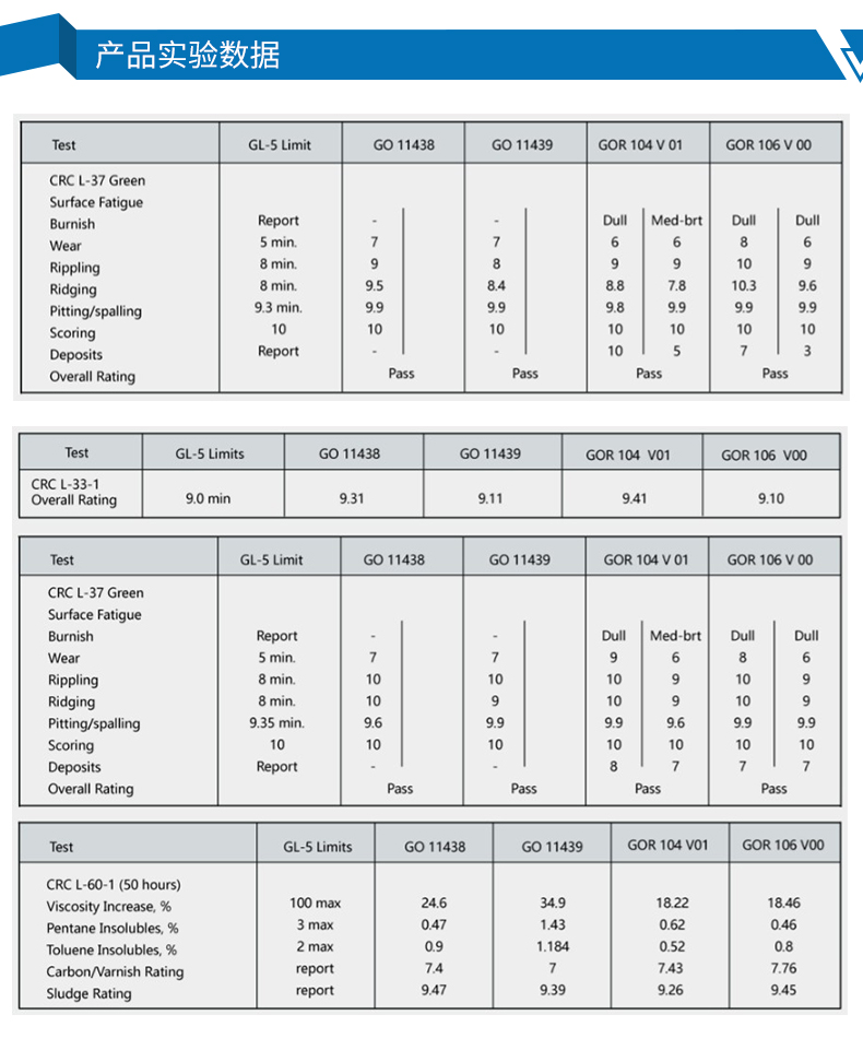 API GL-5 台架试验结果数据