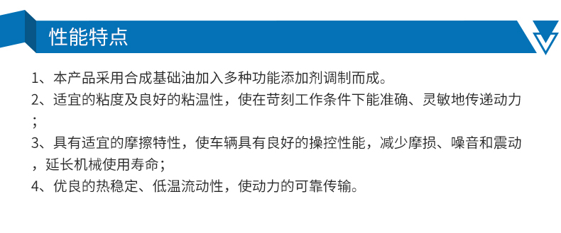 ●优良的热稳定、低温流动性、抗乳化和抗泡性能,保证动力的可靠传输。